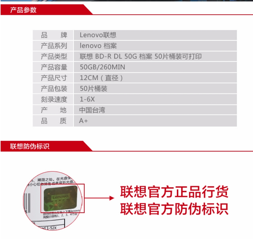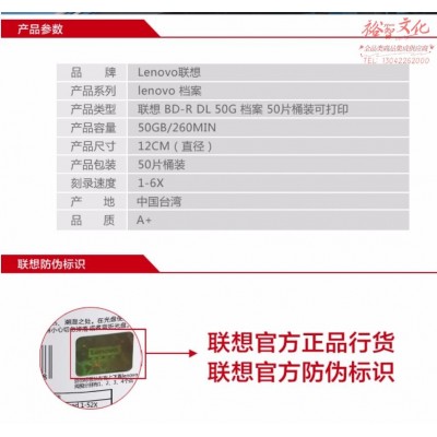 联想(Lenovo)BD-R DL 1-6速 50G 蓝光可打印 50片桶装 蓝光空白光盘SKU:yzwhyp1001844