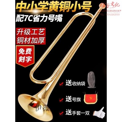 伊薇小号乐器 小号乐器喇叭铜号管乐器青年号冲锋号洋号儿童吹号 (金色)《基础款》配号嘴【有号旗 手套 收纳袋】SKU:yzwhyp1002203