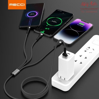 锐思RTC-T12一拖三数据线快充线USB转苹果华为安卓Type-cSKU:yzwhyp1002344