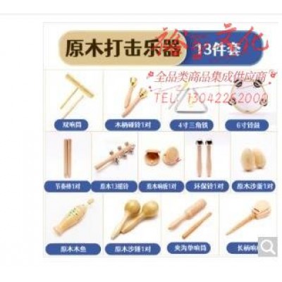 幼儿园奥尔夫打击乐器三角铁响板儿童音乐教具沙锤铃鼓双响筒碰铃13件套SKU:yzwhyp1002683