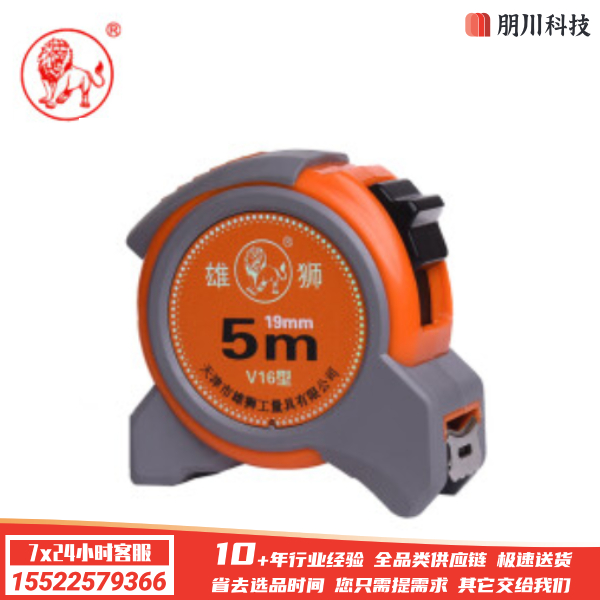 雄狮高精度钢卷尺包胶自锁Ⅱ级精度尺子 V16型5m(尺带宽19mm)SKU:yzwhyp1002829