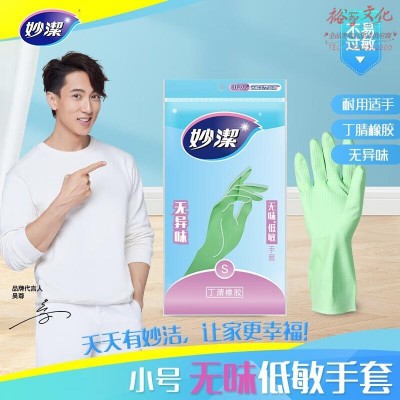 妙洁清洁橡胶手套 丁腈无味低敏厚皮实耐用防滑家务厨房洗碗洗衣 小号*2双SKU:yzwhyp1002848
