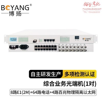 首页 > 广播、电视、电影设备 > 组合音像设备 > 会议、广播及音乐欣赏系统 > 博扬 综合业务电话光端机 8路E1 64路电话 4路百兆物理隔离网 LC单纤60km 机架式 1对价BY-64P8E4FvSKU:yzwhyp1002957