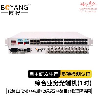 首页 > 广播、电视、电影设备 > 组合音像设备 > 会议、广播及音乐欣赏系统 > 博扬 综合业务光端机 12E1 28路磁石 4路电话 4路物理隔离百兆 单纤20KM FC 带1 1备份 机架式 1对价SKU:yzwhyp1002971