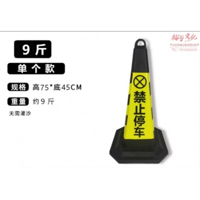 路锥 9斤黑黄禁止停车75x45 橡胶禁止停车位地桩警示牌反光锥形桶请勿泊车路障雪糕筒定制SKU:yzwhyp1003085