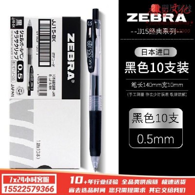 斑马牌(ZEBRA) JJ15按动式中性笔考试水性笔JF-0.5笔芯0.5mm速干签字笔 黑色10支SKU:yzwhyp1003501