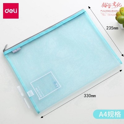 得力(deli) A4文件袋透明网格拉链袋档案袋办公资料袋试卷票据收纳袋 网纱拉边袋 A4蓝色_5544SKU:yzwhyp1003860