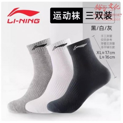李宁(LI-NING)袜子运动袜(3双装)篮球袜男四季吸汗防脱透气SKU:yzwhyp1004148