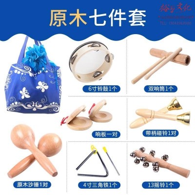 妙笙 奥尔夫打击乐器7件套 幼儿园原木套装儿童玩具碰铃响板沙锤手拍鼓双响筒 儿童击打乐器SKU:yzwhyp1004186