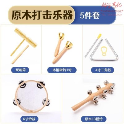 欧麦尔 幼儿园奥尔夫打击乐器三角铁响板儿童音乐教具沙锤铃鼓双响筒碰铃5件套 儿童击打乐器SKU:yzwhyp1004206
