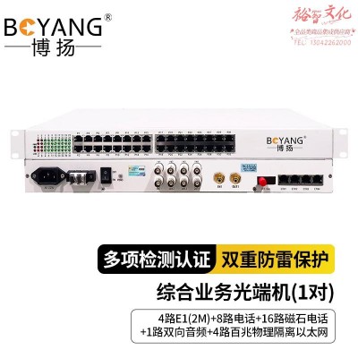 首页 > 广播、电视、电影设备 > 组合音像设备 > 会议、广播及音乐欣赏系统 > 博扬 综合业务光端机 4E1 8路电话 16路磁石 4路物理隔离百兆网络 1路双向音频(莲花头)单纤 20KM 1对价SKU:yzwhyp1004893