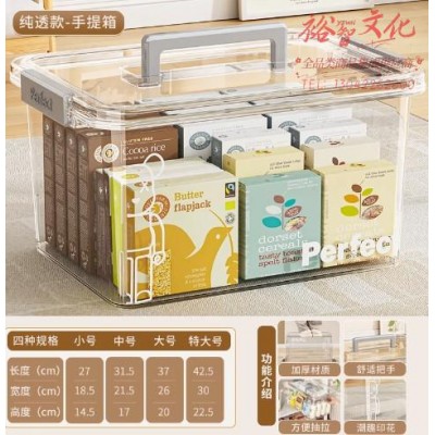 首页 > 建筑建材 > 其他防护用品 > 手提透明收纳箱家用加厚衣服玩具零食书本大容量整理盒塑料储物筐 大号 37*26*20SKU:yzwhyp1005360