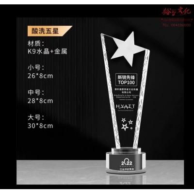 水晶奖杯 酸洗磨砂星(可刻字) 中号 定制款 下单前请联系客服SKU:yzwhyp1005367