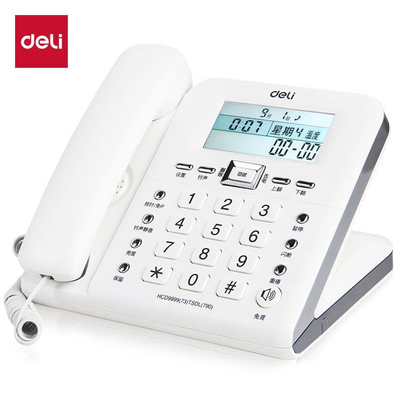 得力(deli)电话机座机 固定电话 办公家用 38°倾角 来电显示 790白SKU:yzwhyp1005421