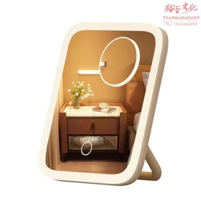 led化妆镜带灯防摔补光小镜子新款宿舍桌面便携家用小型梳妆镜SKU:yzwhyp1005698