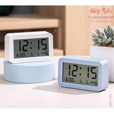 得力LE102-引流款LCD简约闹钟(白色)SKU:yzwhyp1005855