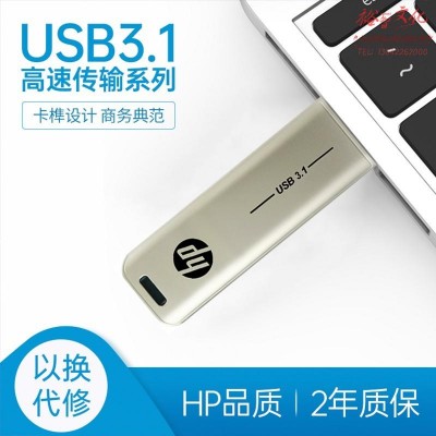 惠普(HP)64G USB3.1 U盘 X796w 香槟金 金属商务可伸缩高速读写电脑车载两用优盘SKU:yzwhyp1006122
