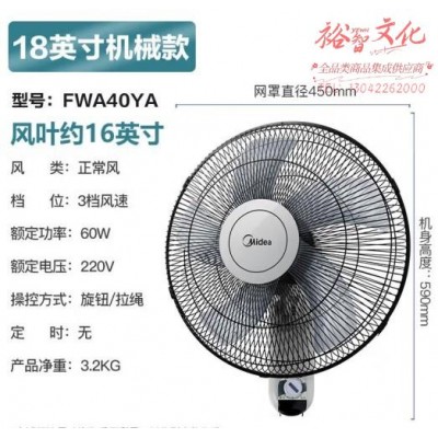 美的 FWA40YA 壁扇壁挂式摇头五叶电风扇SKU:yzwhyp1006327