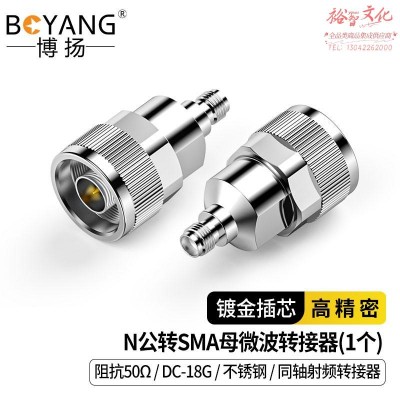博扬 高频同轴转接器50欧 DC-18G 不锈钢 RF射频微波连接器 N公转SMA母转换器 BY-N/SMA-JKGSKU:yzwhyp1006546