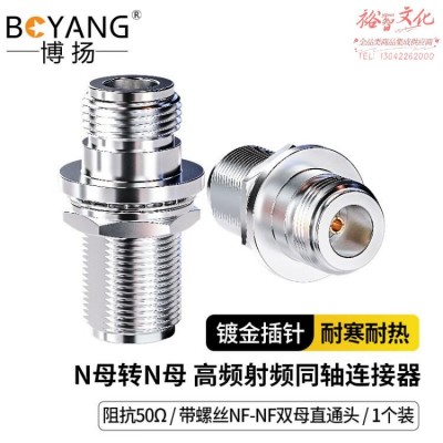 博扬 高频射频同轴连接器50欧 N母转N母带螺丝转接器 N型母直通头NF-NF双母转接头1个装 BY-N-KKYSKU:yzwhyp1006553
