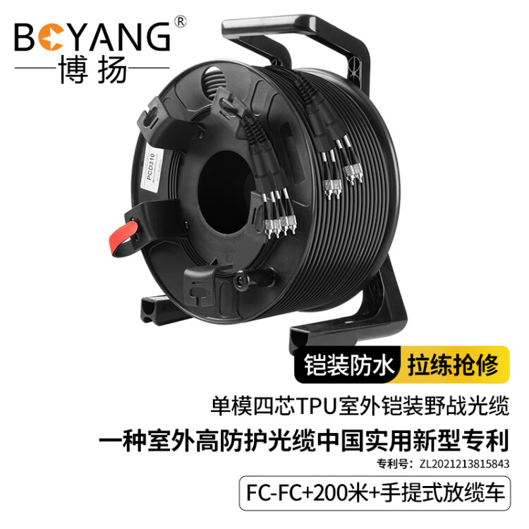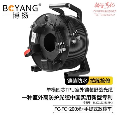 博扬 单模四芯室外野战光缆 铠装防水TPU 野外拉练抢修 FC-FC 200米 手提式放缆车 BY-4SYC-FC200MSKU:yzwhyp1006797