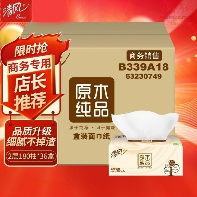 清风抽纸 擦手纸2层180抽*36盒L码 盒抽 餐巾纸 酒店商务商用 整箱SKU:yzwhyp1006816