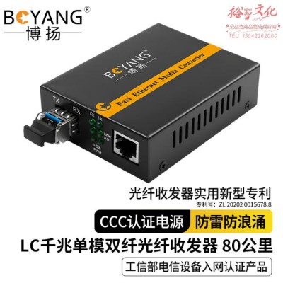 博扬 BY-WG611S-LC-80KM电信级千兆单模双纤光纤收发器光电转换器 支持14槽机架 外置电源 80公里 LC接口SKU:yzwhyp1006934