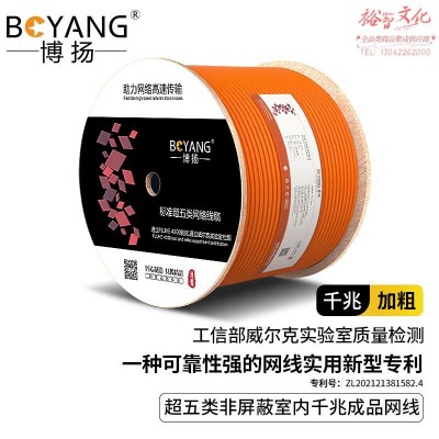 博扬超五类网线箱线0.51mm无氧铜线芯室内非屏蔽4对双绞线 CAT5e类标准网络监控工程线305米/橙色 BY-5305OSKU:yzwhyp1006991