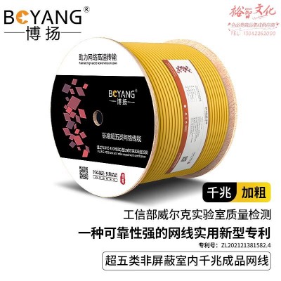 博扬超五类网线箱线0.51mm无氧铜线芯室内非屏蔽4对双绞线 CAT5e类标准网络监控工程线305米/黄色 BY-5305QSKU:yzwhyp1006992