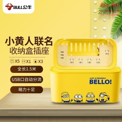 公牛(BULL)小黄人联名 USB新国标收纳盒延长线插座/插线板/插排6位 3USB 全长1.5米GN-F2151USKU:SKU:yzwhyp1008113