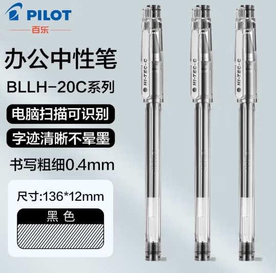 百乐(PILOT) 中性笔学生考试刷题专用笔BLLH20C5/C4啫喱笔商务办公财务笔签字笔可换芯 蓝色0.4mm 单支装SKU:yzwhyp1008364