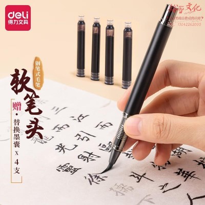 得力(deli)钢笔式毛笔 软笔书法练习毛笔小楷笔可加墨可换芯 成人初学者学生入门字帖练字 75510SKU:yzwhyp1008751