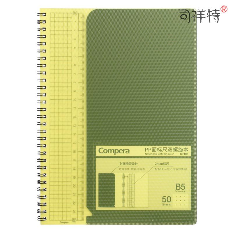 齐心 C7108 Compera 钻石系列 PP面标尺双螺旋本 B5 50张(蓝黄2色,颜色备注)SKU:SXT10002298SKU:yzwhyp1009221