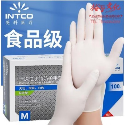 英科丁腈一次性加厚耐用 白色橡胶手套 M码 100个/盒SKU:SKU:yzwhyp1009469