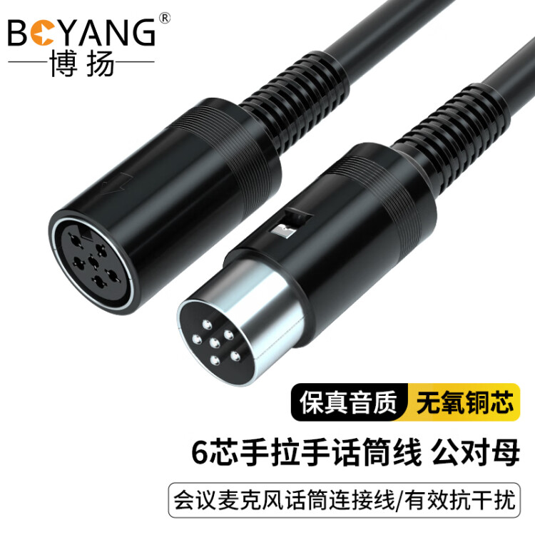 博扬 6芯手拉手话筒线25米 公对母 6针会议麦克风话筒连接线 六针对六孔延长线 BY-LS6-JK25MSKU:yzwhyp1009507