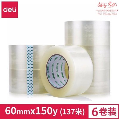 得力(deli) 封箱胶带透明米黄封箱胶带 60mm*150y 六卷 30334SKU:yzwhyp1009940