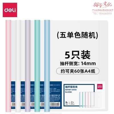 得力(deli)5只A4透明拉杆夹文件夹 14mm背宽彩色抽杆夹简历夹 63106 单色随机SKU:yzwhyp1010048