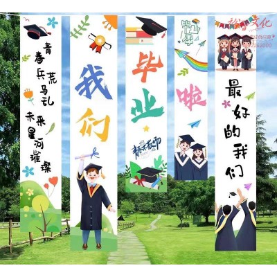 首页 > 装具 > 台布(桌布) > 毕业季背景布毕业典礼装饰横幅氛围布置“我们毕业啦”挂布 5条SKU:yzwhyp1010481