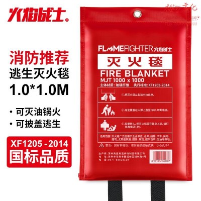 火焰战士灭火毯玻璃纤维防火毯家庭厨房食堂用灭火器配套用逃生毯1x1MSKU:yzwhyp1012310