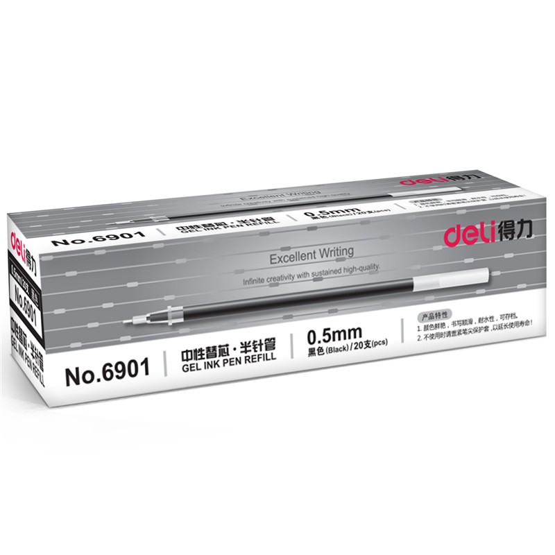 得力6901中性笔芯0.5mm半针管 黑色 20支 tianjin2406211147390002SKU:yzwhyp1012981