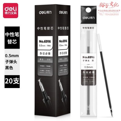 得力6916中性笔芯0.5mm子弹头 黑色*20支 tianjin2406211217030017SKU:yzwhyp1013001