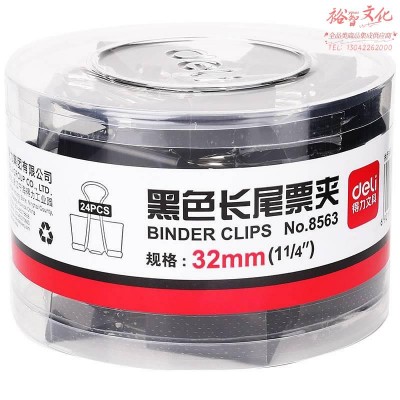 得力8563-3#黑色长尾夹32mm筒装 SKU:yzwhyp1013060