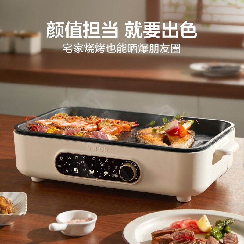 苏泊尔(SUPOR)电烧烤炉家用多功能煎烤一体大功率加大烤盘4-6人不粘电烧烤煎烤机 GJ3723P805SKU:yzwhyp1013897