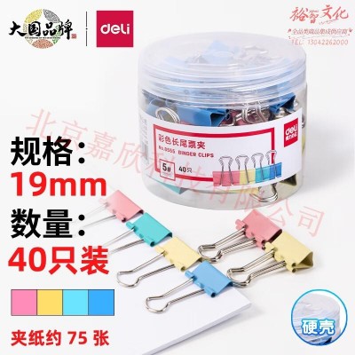 得力(deli)8555ES彩色长尾夹【19mm】(40只/桶) tianjin2406211504550229SKU:yzwhyp1014053