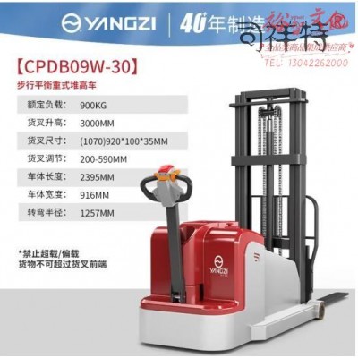 扬子(YANGZI)电动叉车平衡重堆高车步行式配重堆垛车无支撑腿装卸车 CPDB09W-30丨0.9吨3.0米 SKU:yzwhyp1014478
