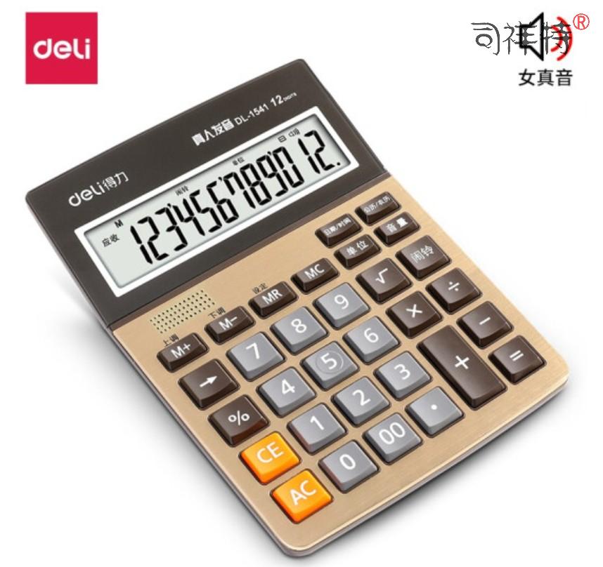 首页 > 办公设备 > 计算器 > 得力(deli)12位大屏幕语音计算器 闹钟日历功能语音计算机 学生/办公口算 办公用品 金色1541A SKU:SXT10006226SKU:yzwhyp1014788
