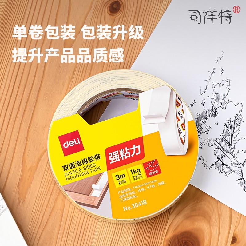 得力30418-PE双面泡棉胶带18mm*3m*1mm(白色)(卷)-强力款 SKU:yzwhyp1014857