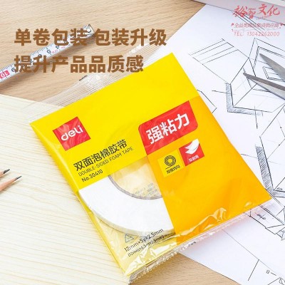 得力30410EVA泡棉双面胶带12mm*5y*2.5mm(白)(1卷/袋) SKU:yzwhyp1014869