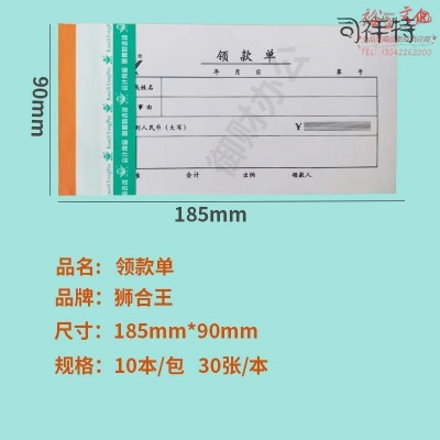 狮合王领款单185*90mm10 本装财务会计办公用品 TJZ09181409057237SKU:SXT10006426SKU:yzwhyp1014930