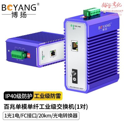 博扬 工业级交换机单模单纤FC 一光一电百兆收发器 宽温宽压导轨式以太网光电转换器 20km含电源BY-GF1013A/BSKU:yzwhyp1015395